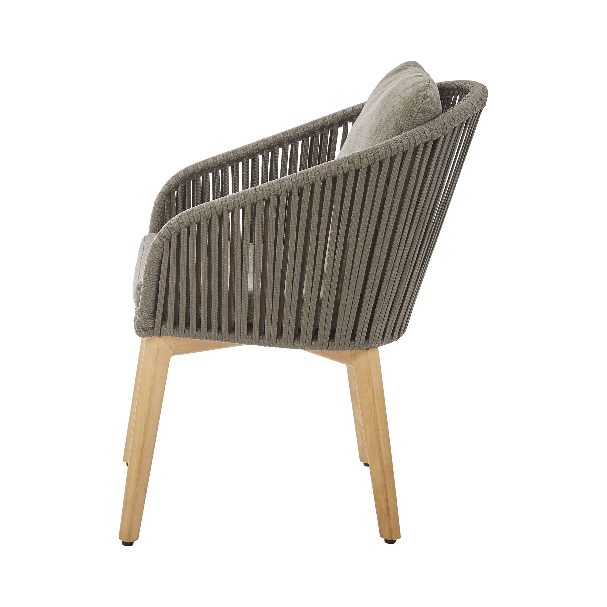 12 mm breiten Rope-Band in Grau und einem sehr hochwertigem Untergestell aus Premium Teak.
